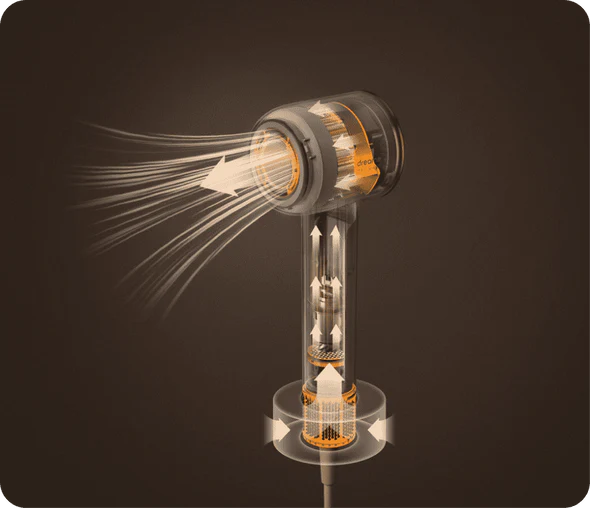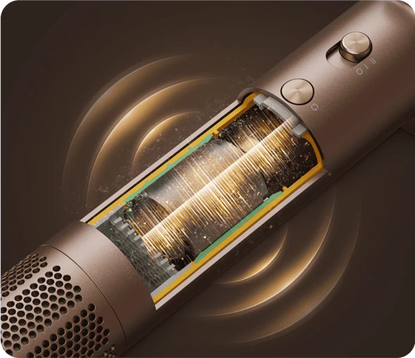 A powerful brushless motor with an optimized vertical structure delivers robust airflow while generating less than 58dB of noise. Dry your hair without completely drowning out the world around you for more enjoyable hair drying.